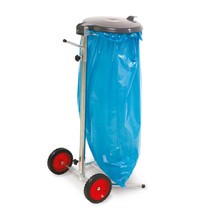 - Support au sol avec maintien pour sac-poubelle, extrêmement mobile grâce à deux roues