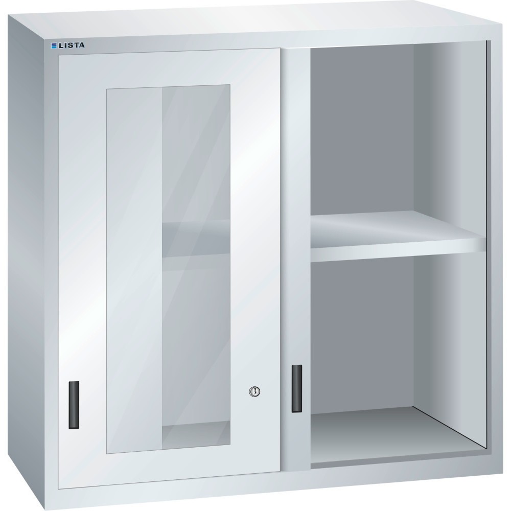 Armoire à poser LISTA avec portes coulissantes 54x27E, (lxPxH) 1 023x572x1 000 mm, vitres transparentes, gris clair