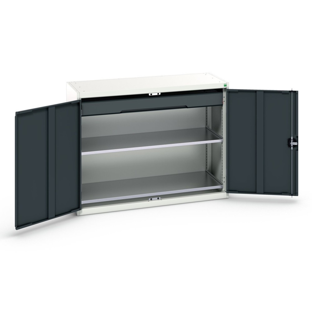 bott Armoire à portes battantes avec tiroir verso, avec 2 tablettes et 1 tiroir, lxPxH : 1 300 x 550 x 1 000 mm