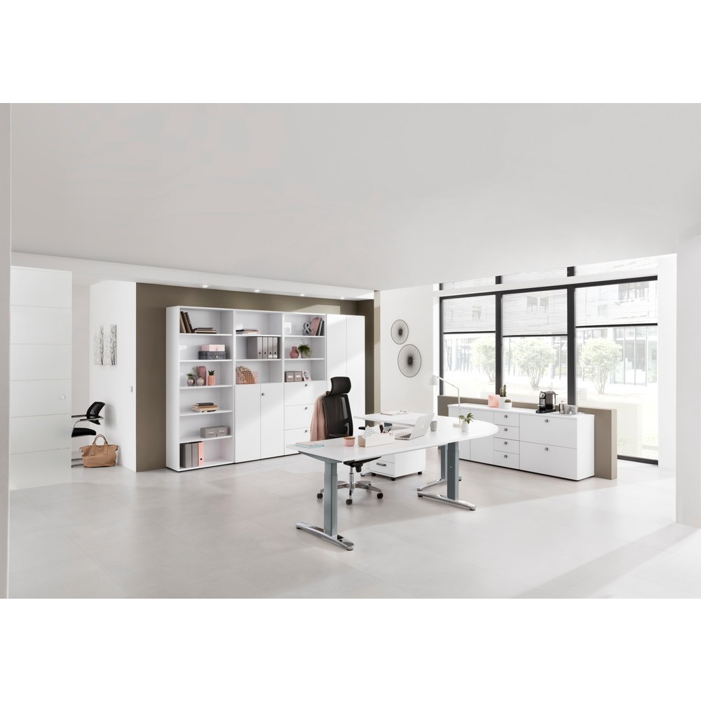 Avec sa fonctionnalité sophistiquée, sa construction solide et son apparence moderne, le bureau Hammerbacher réglable en hauteur manuellement avec pied en C est un choix fiable pour un poste de travail ergonomique.