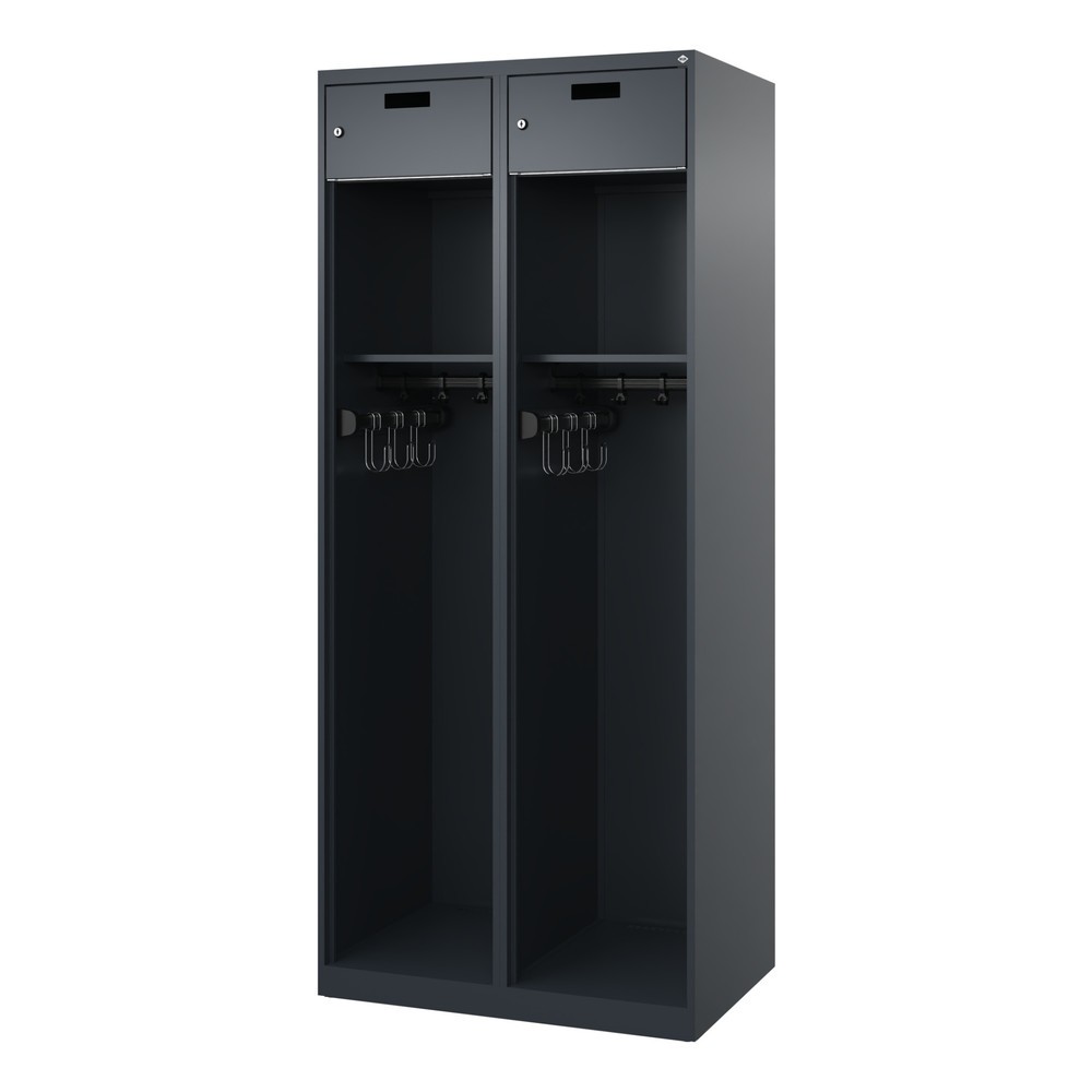 C+P Vestiaire pompier PRAKTUS, patins, 2 compartiments, HxlxP 1 850 x 800 x 500 mm, gris anthracite