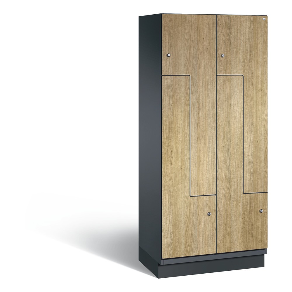C+P Z-Spind Cambio, 2 Abteile, Abteilbreite 400 mm, HxBxT 1980x800x525 mm, RAL 7021 Schwarzgrau, Dekor Eiche Sereno, Sockel