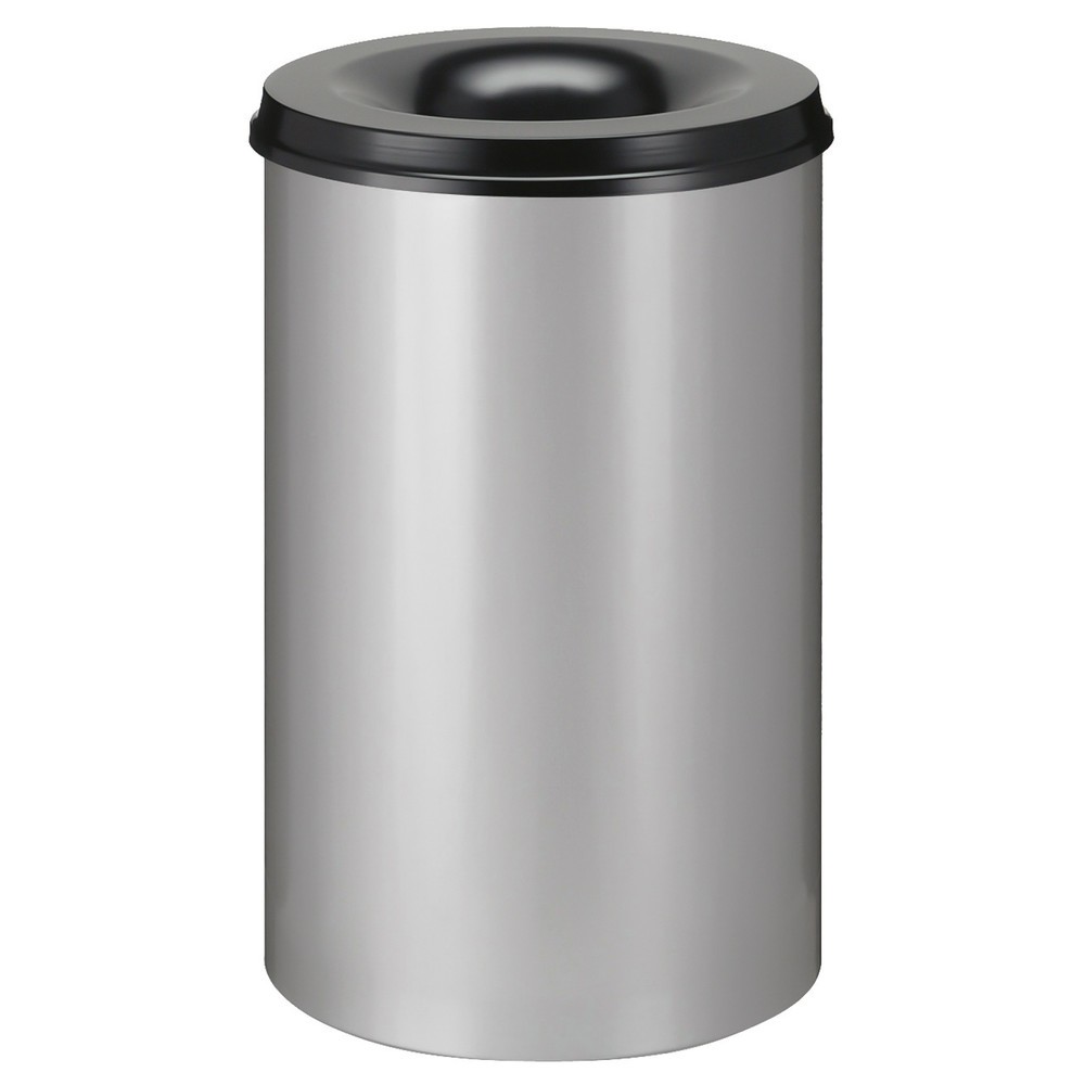 Corbeille à papier de sécurité, auto-extinguible, acier, 110 litres, gris aluminium, noir
