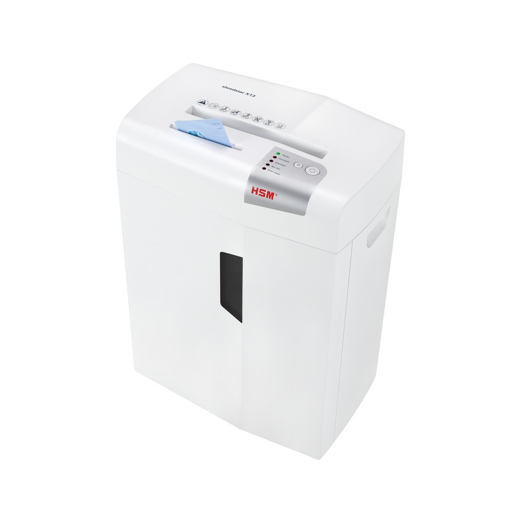 Le destructeur de documents HSM shredstar X13 se démarque par sa construction compacte et son design moderne. Il déchiquette le papier sans effort et de manière sûre. Le bloc de coupe séparé pour CD vous permet de déchiqueter CD et DVD, cartes de crédit et cartes client de manière simple et confortable.