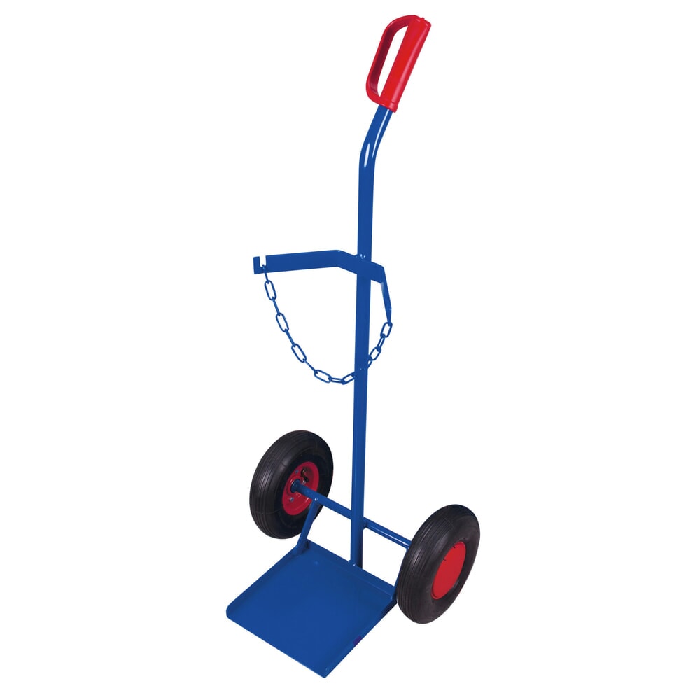 Diable pour bouteilles en acier VARIOfit®, pour 1 bouteille de 40 à 50 litres, pneumatique, bleu gentiane