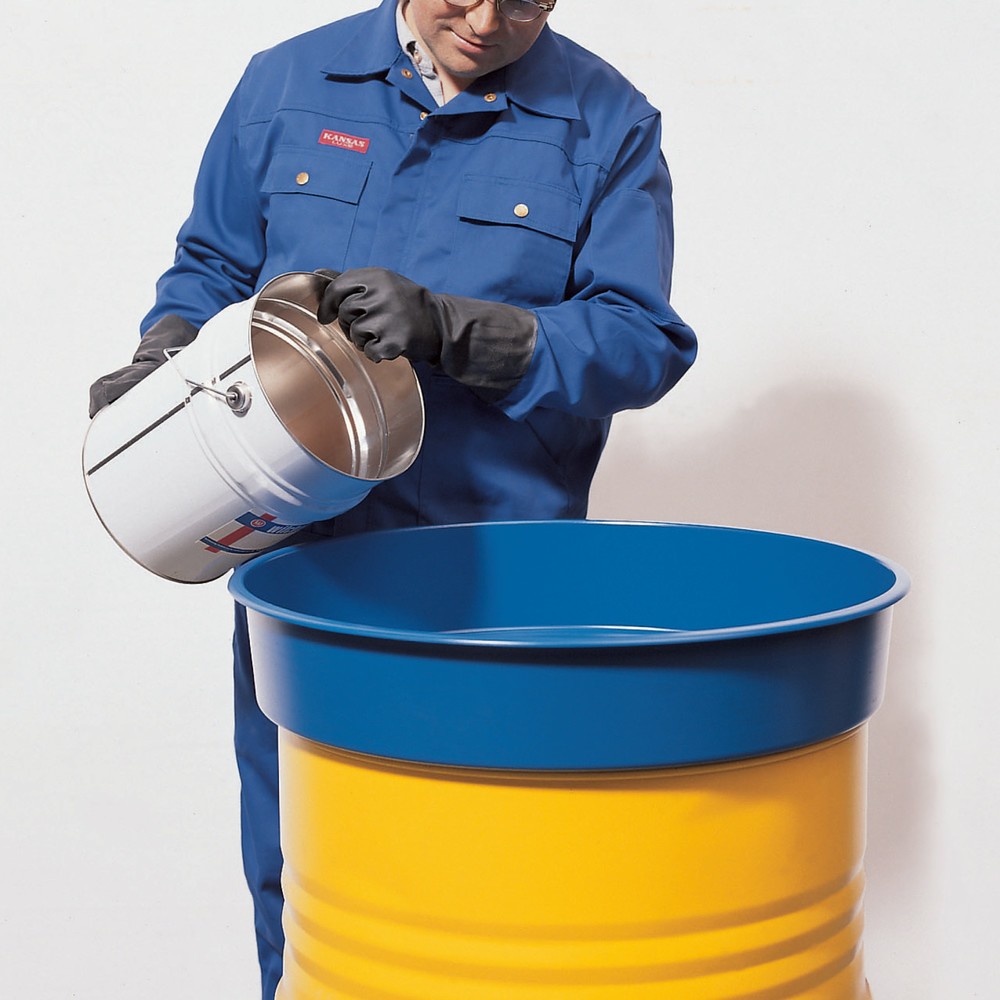 Pour remplir un grand fût de 200 litres, l’utilisation de l’entonnoir à fût asecos® en acier présente un avantage car le liquide peut être déversé sans éclaboussures et de manière sûre dans le fût. La surface lisse de l’entonnoir dirige les liquides visqueux, inflammables et non inflammables proprement dans le fût. Les filtres et les bidons peuvent être placés sur la trémie pour les laisser s’égoutter.