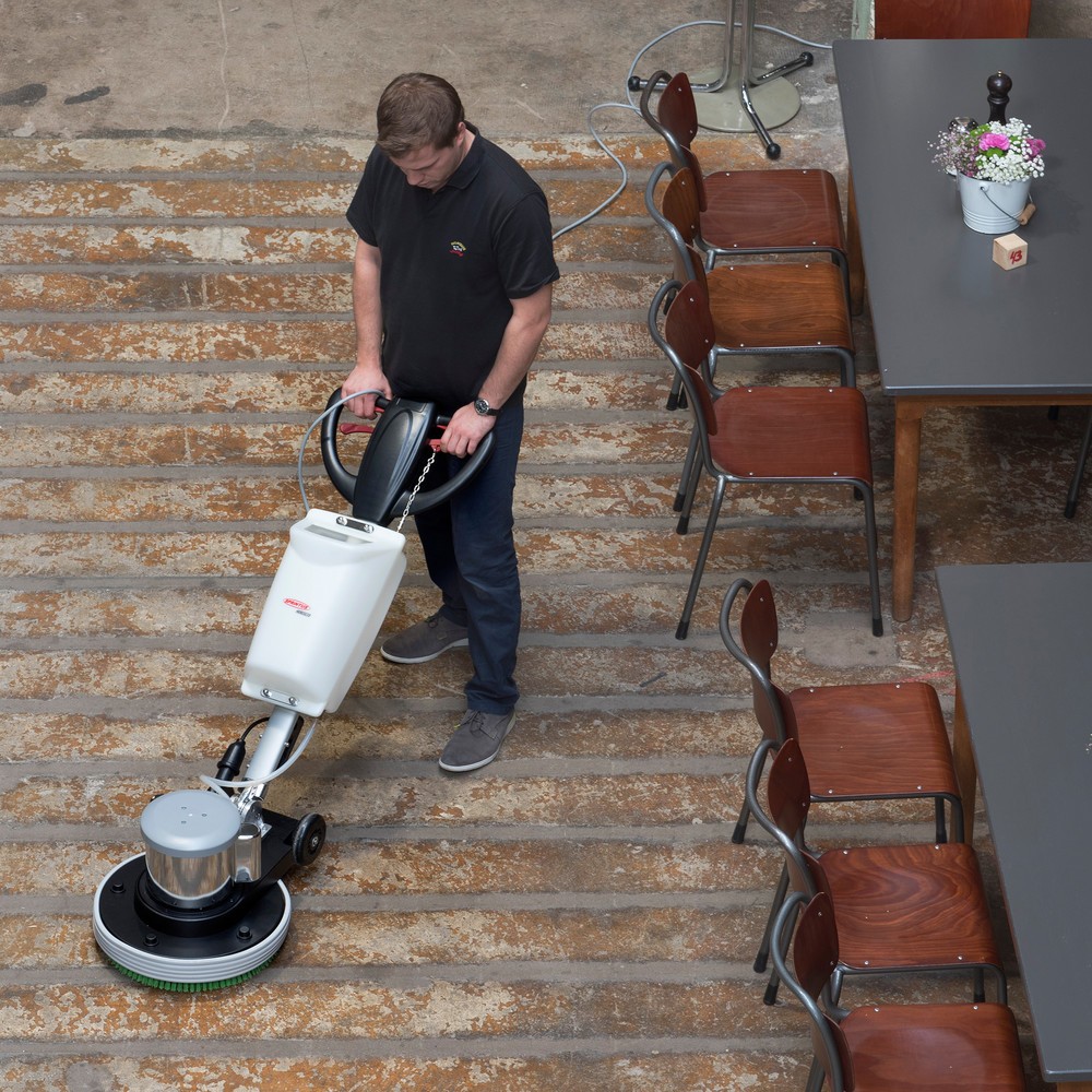 La monobrosse SPRiNTUS HERCULES permet le nettoyage intensif sur toutes les surfaces dures et moquettes. Cette machine a été conçue avec un engrenage planétaire en acier particulièrement robuste et silencieux.