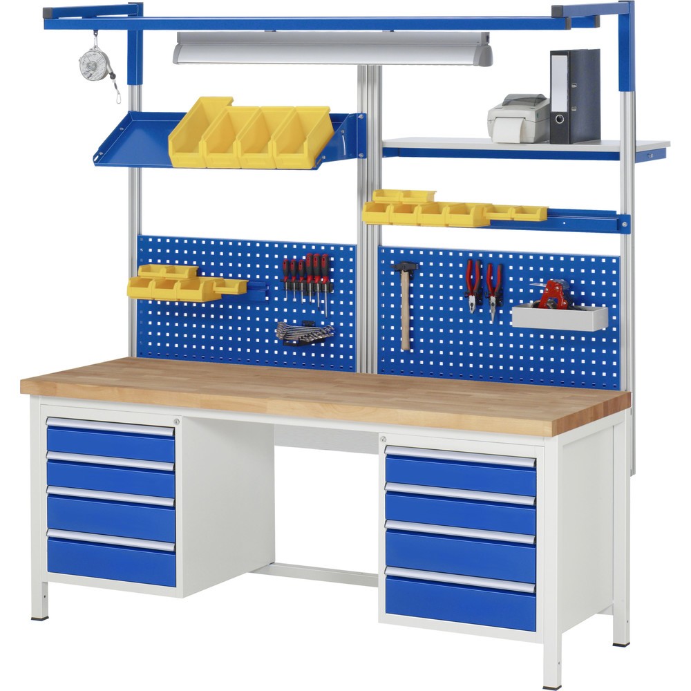 RAU Établi série 8000, 2 caissons, HxlxP 840 x 2 000 x 700 mm, 8 tiroirs extractibles à 90 % 4 x 90, 2 x 150, 2 x 210 mm