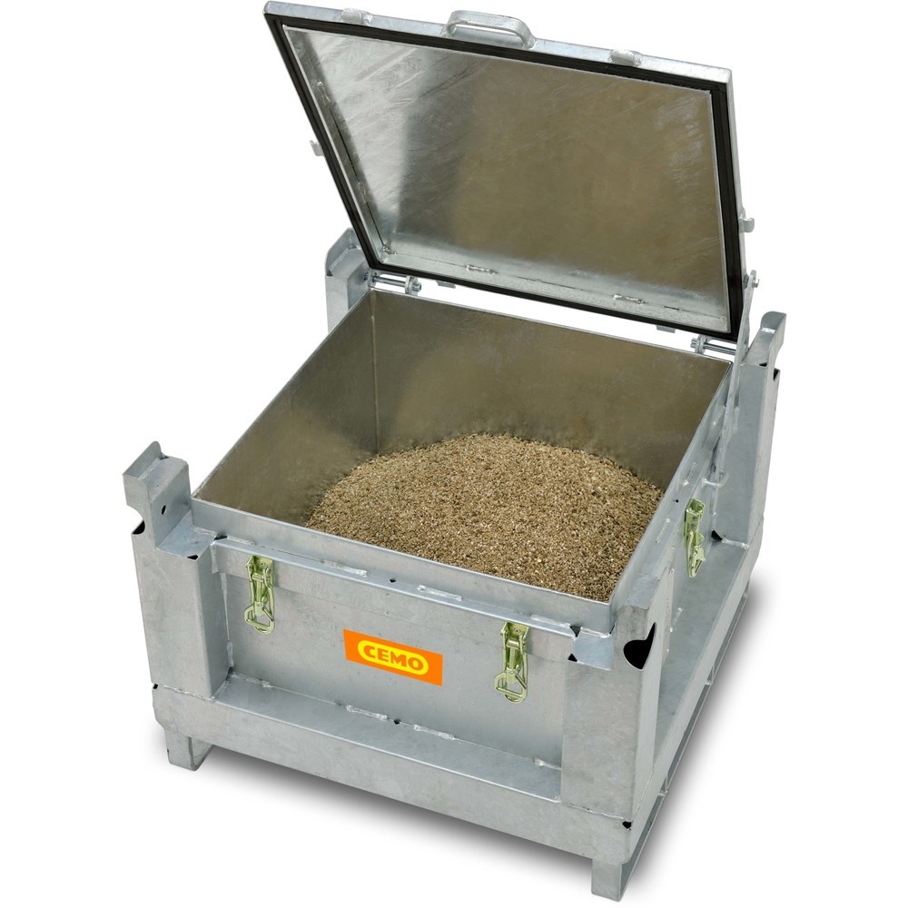 Le collecteur pour batteries CEMO vous permet de conserver les batteries endommagées de manière sécurisée jusqu’à leur élimination – le coffret empilable dispose de l’agrément ONU pour matières dangereuses, groupes d’emballage I, II ou III. Le couvercle du conteneur en acier résistant avec boucles de fermeture solides est facile à ouvrir et peut être bloqué par crans. Un joint en caoutchouc complet empêche la pénétration d’humidité. Pour faciliter sa manipulation, le conteneur est accessible par en dessous avec un chariot élévateur et peut être déplacé par grue.