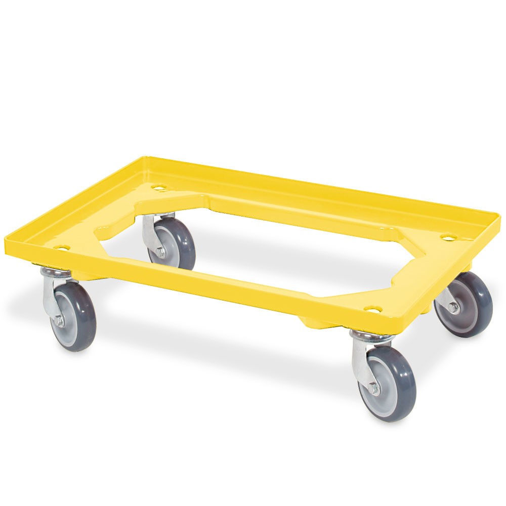 Rouleau de transport pour Bacs empilables Euro 600x400 mm jaune, 4 roulettes pivotantes, roues en Caoutchouc gris